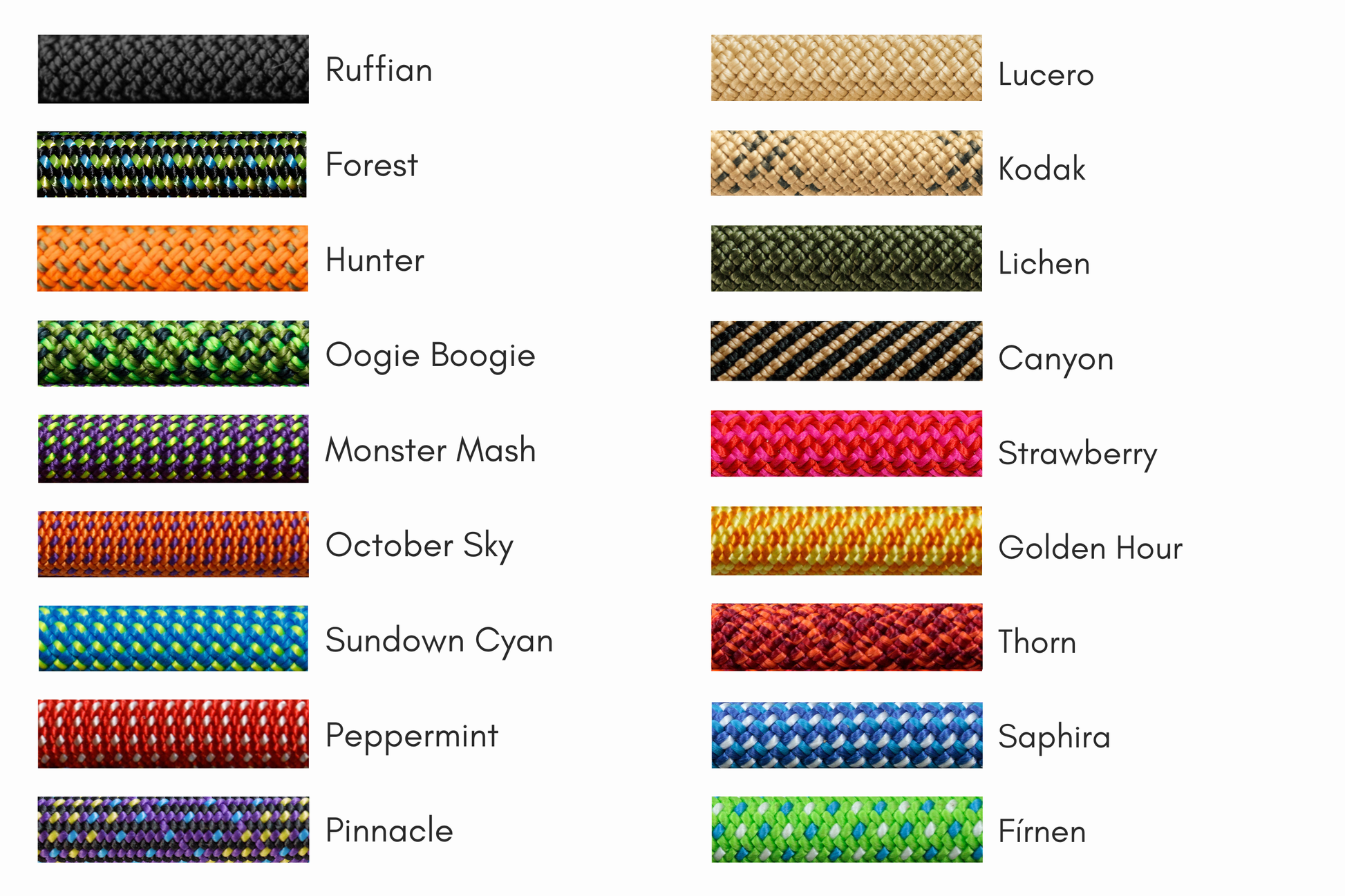 The climbing rope that is underneath the inlays have their core removed and are flush against the leather. Closed-cell neoprene is wrapped with padding leather. All components are sewn together for maximum durability.